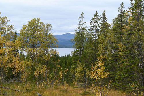 Vi njuter av en vacker utsikt över jämtlandsfjäll i höstfärger